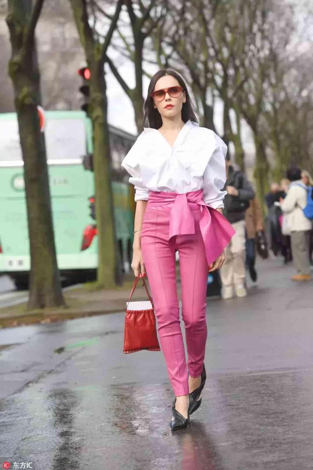 飄帶式的腰帶又如何束緊褲腰呢?小菜一碟,兩邊系過來中間打個結(jié)完事?學一學大表姐她們吧!目測到黃金分割點斜著打一個結(jié),比中間一個大蝴蝶結(jié)惹眼多了!