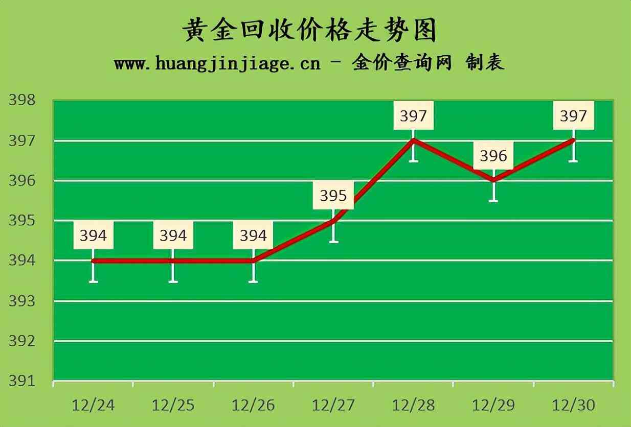 黃金回收價格397元/克,鉑金回收價格200元/克,鈀金回收價格366元/克,18K金回收價格294元/克,銀條回收價格3.8元/克。(黃金行情是波動的,回收金價沒有固定標(biāo)準(zhǔn)。)