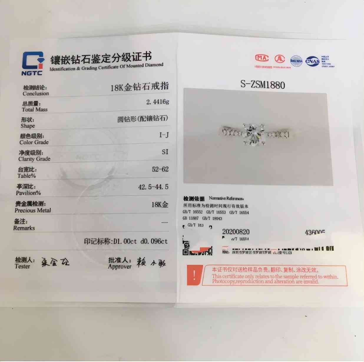 1、國(guó)家珠寶玉石質(zhì)量監(jiān)督檢驗(yàn)中心(NGTC證書)