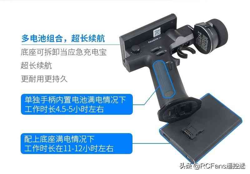 即使不插底座,NB4也可以使用內(nèi)置的鋰電池正常工作。這對比賽玩家而言非常友好,尤其是油車玩家,決賽往往要拿著遙控器45分鐘。內(nèi)置電池滿電的情況下,可以連續(xù)使用4.5~5個(gè)小時(shí)。完全可以應(yīng)付決賽的耗電需求,并降低整體重量,減少賽員疲勞。