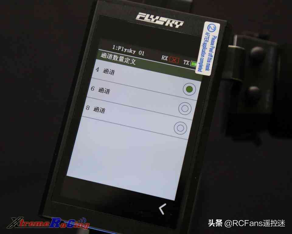 對于方案B,只需要在系統(tǒng)設(shè)置的通道數(shù)量定義菜單中,設(shè)置為8通道,然后將8通道以上的兼容接收機(jī)(如FTR10)與遙控器對頻即可使用。