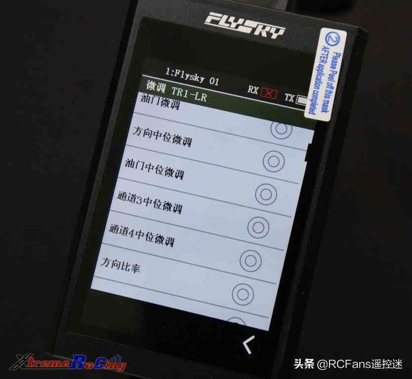 遙控器上的TR1與TR2撥動(dòng)開關(guān)是最基本的按鍵,默認(rèn)設(shè)定是TR1左右撥(TR1-FB)是舵機(jī)的中位微調(diào),TR2左右撥(TR2-FB)是油門的中位微調(diào),每撥一下遙控上的CH1或CH2位置變動(dòng)2%,該數(shù)值可以在該按鍵設(shè)定界面變改。