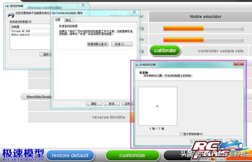 Noble模擬器是一個(gè)模擬游戲控制器的功能,通過USB連接到電腦并開啟Noble模擬器功能后,電腦會(huì)將遙控器識(shí)別為游戲控制器,可以兼容部分賽車游戲如VRC PRO(電腦上玩的RC模擬軟件),其他可以用戶自己嘗試。
