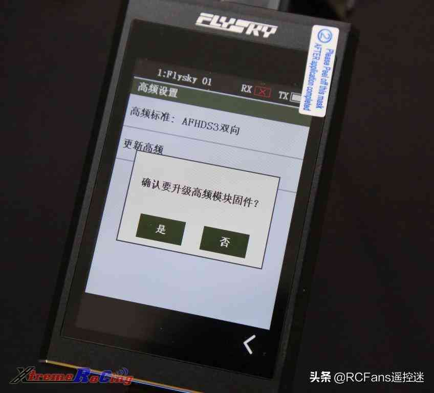 4.2 更新高頻(更新高頻后如果無法與接收機(jī)對碼則需要強(qiáng)制更新接收機(jī))更新高頻與更新接收機(jī)是什么?為什么以前用SANWA/FUTABA之類的都沒見過這種東西?我們可以這么理解:由于遙控與接收機(jī)之間傳輸信號需要上述的高頻標(biāo)準(zhǔn),也就是通信協(xié)議,當(dāng)工程師改進(jìn)了通信協(xié)議,可以讓信號傳輸?shù)酶旄€(wěn)定的時(shí)候,通過更新高頻頭和接收機(jī),往遙控的高頻頭模塊和接收機(jī)寫入新的程序,就能達(dá)到更好的效果了。