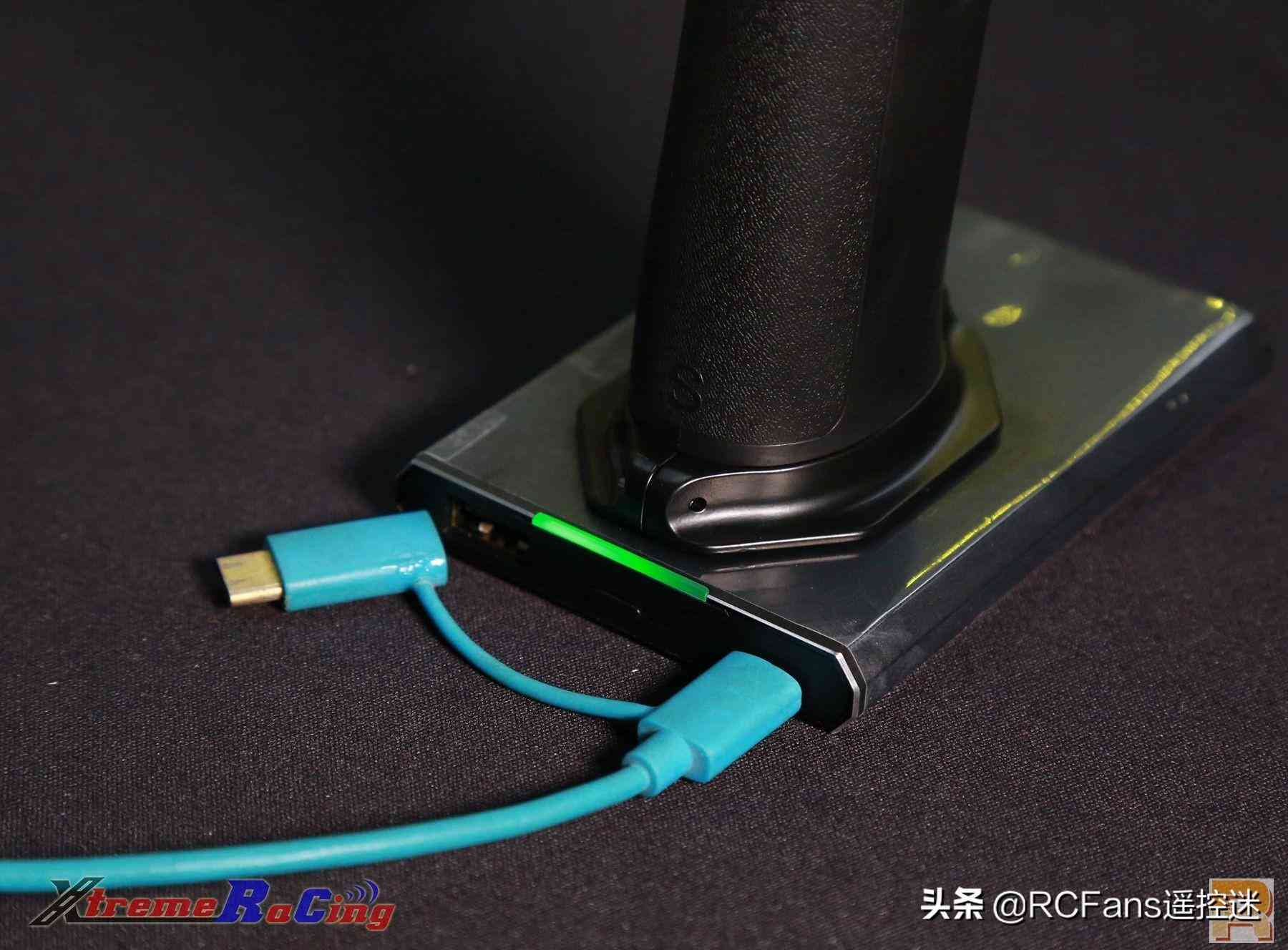 2. 手柄內(nèi)置電池,外加移動(dòng)充電寶底座。NB4標(biāo)配其實(shí)是有2個(gè)電池,一個(gè)藏在遙控器的手柄位置內(nèi)部,另一個(gè)則是遙控器的底座。
