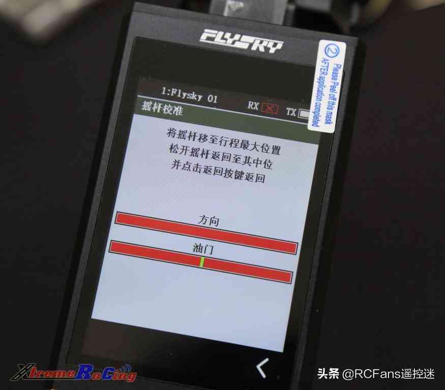 6. 搖桿校準(zhǔn)搖桿校準(zhǔn)是指遙控器油門和轉(zhuǎn)向電位器的校準(zhǔn),例如當(dāng)換了新的手輪引起手輪行程變化時(shí),或者用久了之后中位輕微漂移的情況下,就需要校準(zhǔn)搖桿來重新匹配。校準(zhǔn)方法:在系統(tǒng)設(shè)置菜單中,點(diǎn)擊搖桿校準(zhǔn)字樣,系統(tǒng)提示是否確認(rèn)要進(jìn)入搖桿校準(zhǔn)