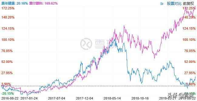 如果看2016年到2018年,兩家公司的收入和利潤也相當(dāng)(本來還有家做口腔的通策醫(yī)療也是模式類似,但是體量比這兩家小,而且和愛爾更像,本文把他歸為和愛爾),而且從2016年8月看兩家公司的市值也基本相同,意味著估值也基本一樣。但是到現(xiàn)在兩家公司股價表現(xiàn)相差甚遠(yuǎn),愛爾漲幅169%市值已經(jīng)1040億,但是美年漲幅僅20%市值只有479億,兩年的時間,市值拉開一倍的距離。