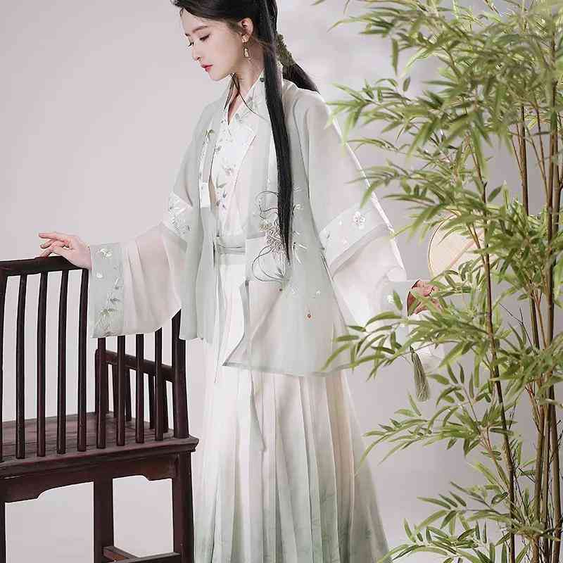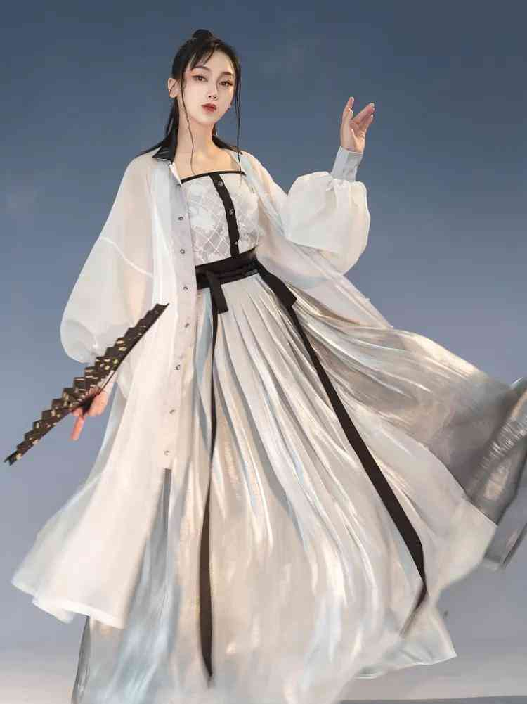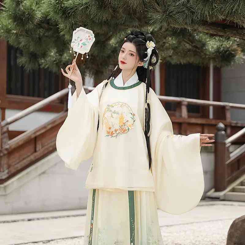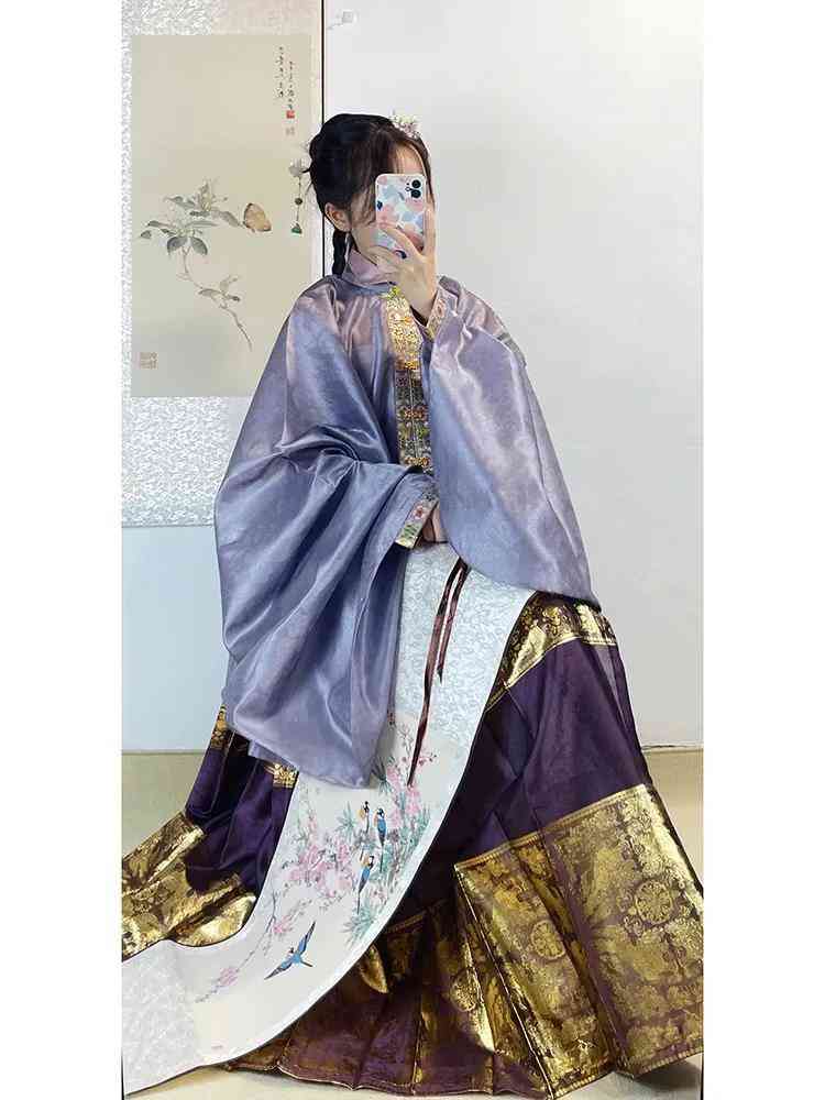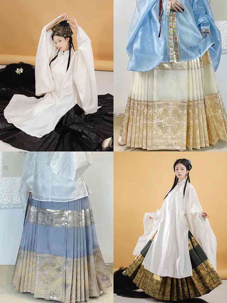 [六米擺七對(duì)褶,八色可選,采用暗紋和織金工藝,妥妥富貴大明少女的穿搭。]