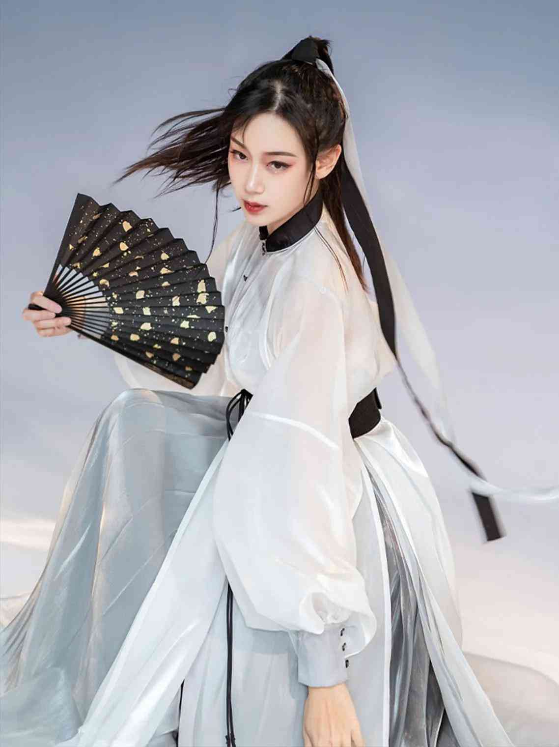 [采用長(zhǎng)干寺面料和暗紋設(shè)計(jì),高級(jí)的配色使整套衣服更顯奢華,下裙采用灑金工藝,絕美而低調(diào)。兩色可選。]