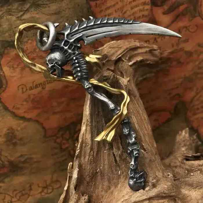 圖為死神之鐮吊墜,黑色的鐮身細(xì)節(jié)滿滿,配18k金飄帶視覺(jué)沖擊極強(qiáng)