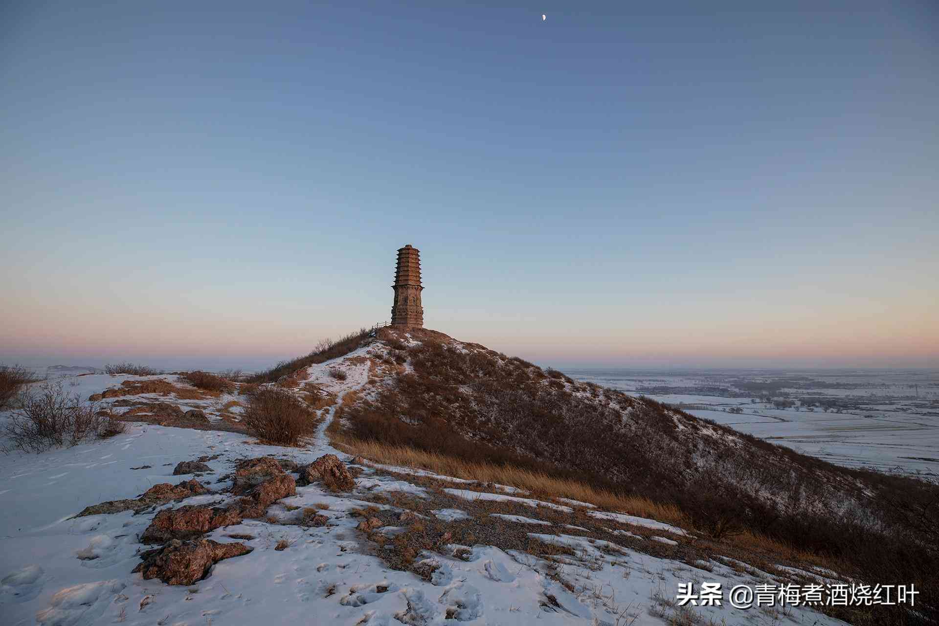 我們站在山頂,身邊是千年古塔和起伏的山巒,眼底卻是皚皚白雪和煙火人間。