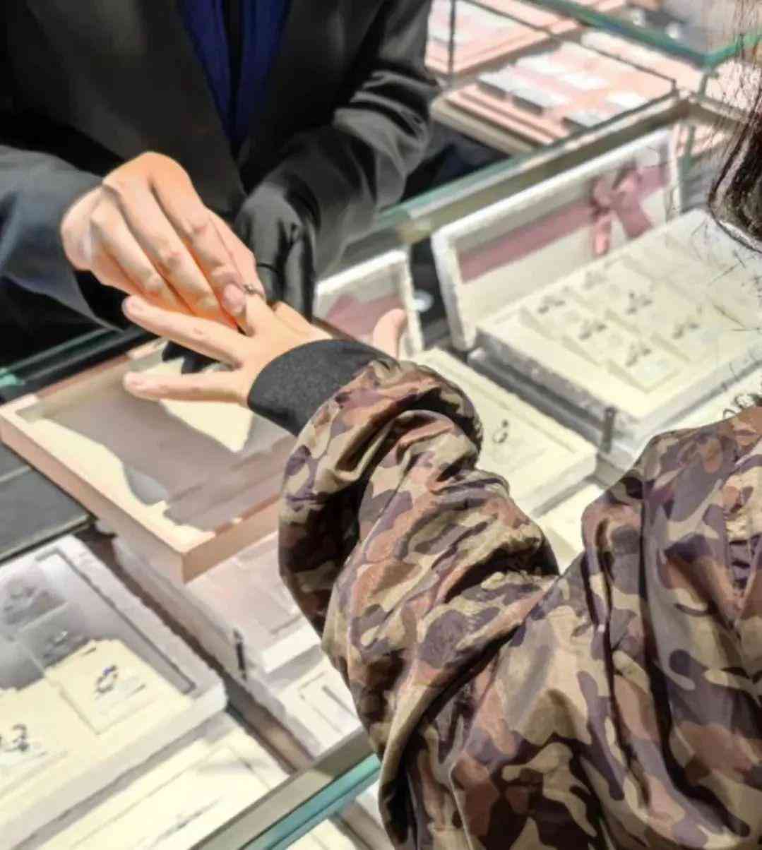 二是你可以像我一樣,到商場(chǎng)逛逛珠寶店進(jìn)行現(xiàn)場(chǎng)試戴,看看什么款式跟自己比較合適。