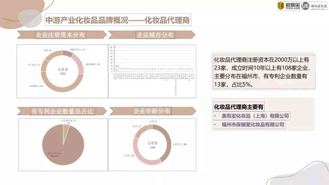 深圳市是全國護(hù)膚企業(yè)數(shù)量最多的城市,有1070家;我國化妝品代理商最為集中的城市則是福州市。全國化妝品代理商總數(shù)為259家,注冊資本2000萬以上的有23家,成立時(shí)間超過10年的有108家企業(yè)。
