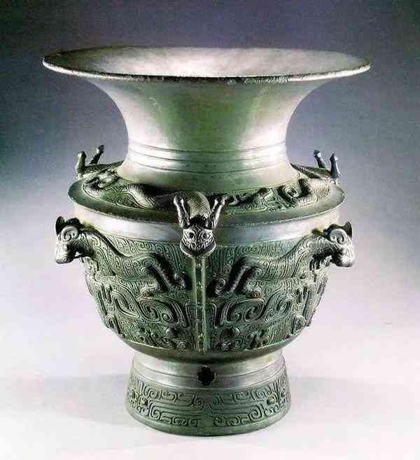 龍虎紋青銅尊,商代,出土于阜南縣,時代最早表現(xiàn)“龍虎爭霸”圖景的青銅器,肩部飾三條曲身龍紋,腹部飾三組虎食人紋,圈足飾饕餮紋。