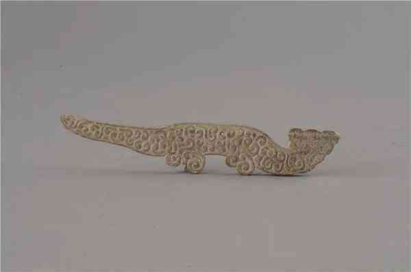 伏虎狀玉虎,春秋時期,全身浮雕云谷紋,巧妙利用紋飾卷曲狀形成虎頭、虎足的輪廓。