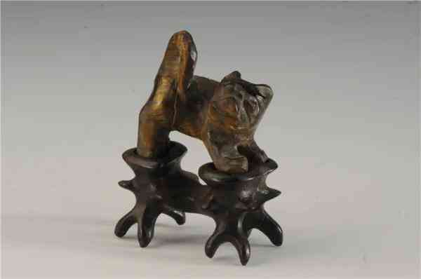 木變石虎,清代?;⒀凼?,多呈黃棕色,寶石內(nèi)帶有類絲質(zhì)的光紋,因其顏色紋理似木,又稱木變石,是一種石英集合體。