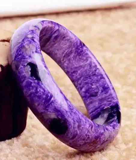 查羅石的顏色為淺紫至紫,紫藍(lán),個別含有白、金黃、黑、褐、棕等顏色的色斑;整體呈現(xiàn)玻璃光澤至蠟狀光澤,局部還有絲絹光澤。優(yōu)質(zhì)的查羅石,顏色是鮮艷均勻的紫紅色,質(zhì)地細(xì)膩無暇,塊度大。
