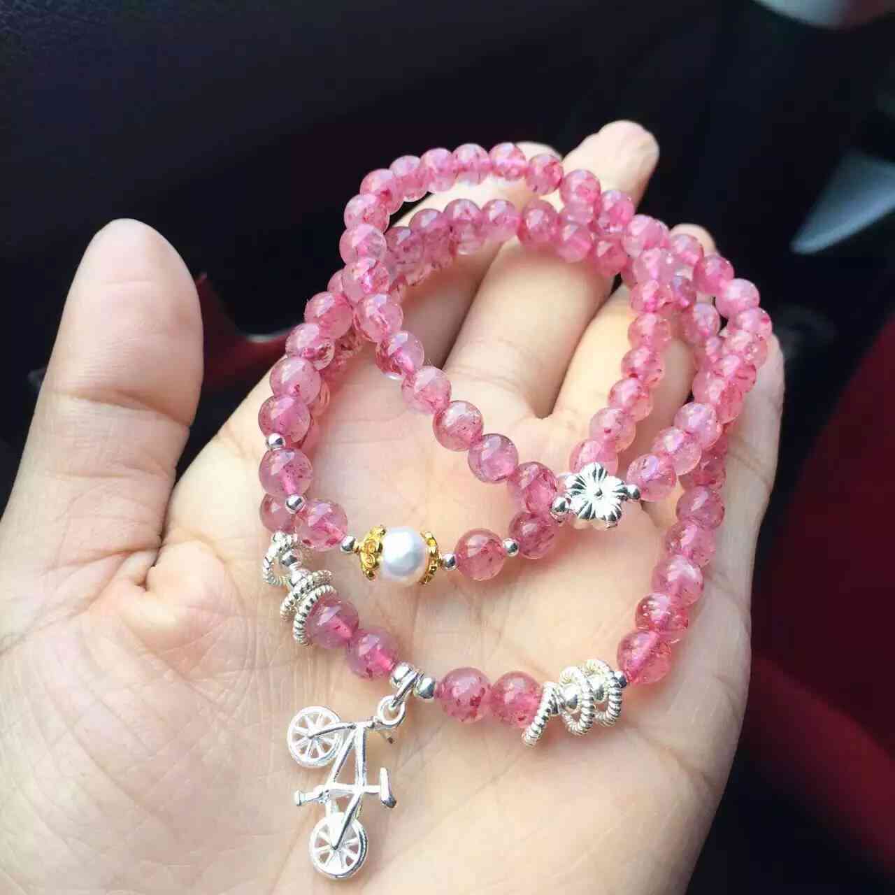 簡單的純銀配草莓晶,款式很漂亮