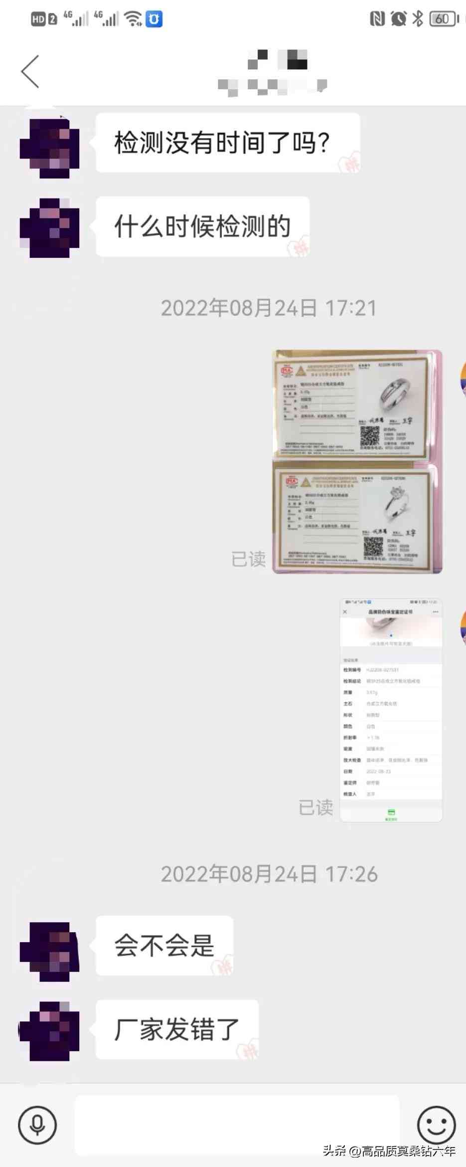 去問(wèn)商家的時(shí)候,商家剛開(kāi)始不承認(rèn),給他看了貴金屬鑒定證書(shū)之后又說(shuō)是廠家發(fā)錯(cuò)貨了。