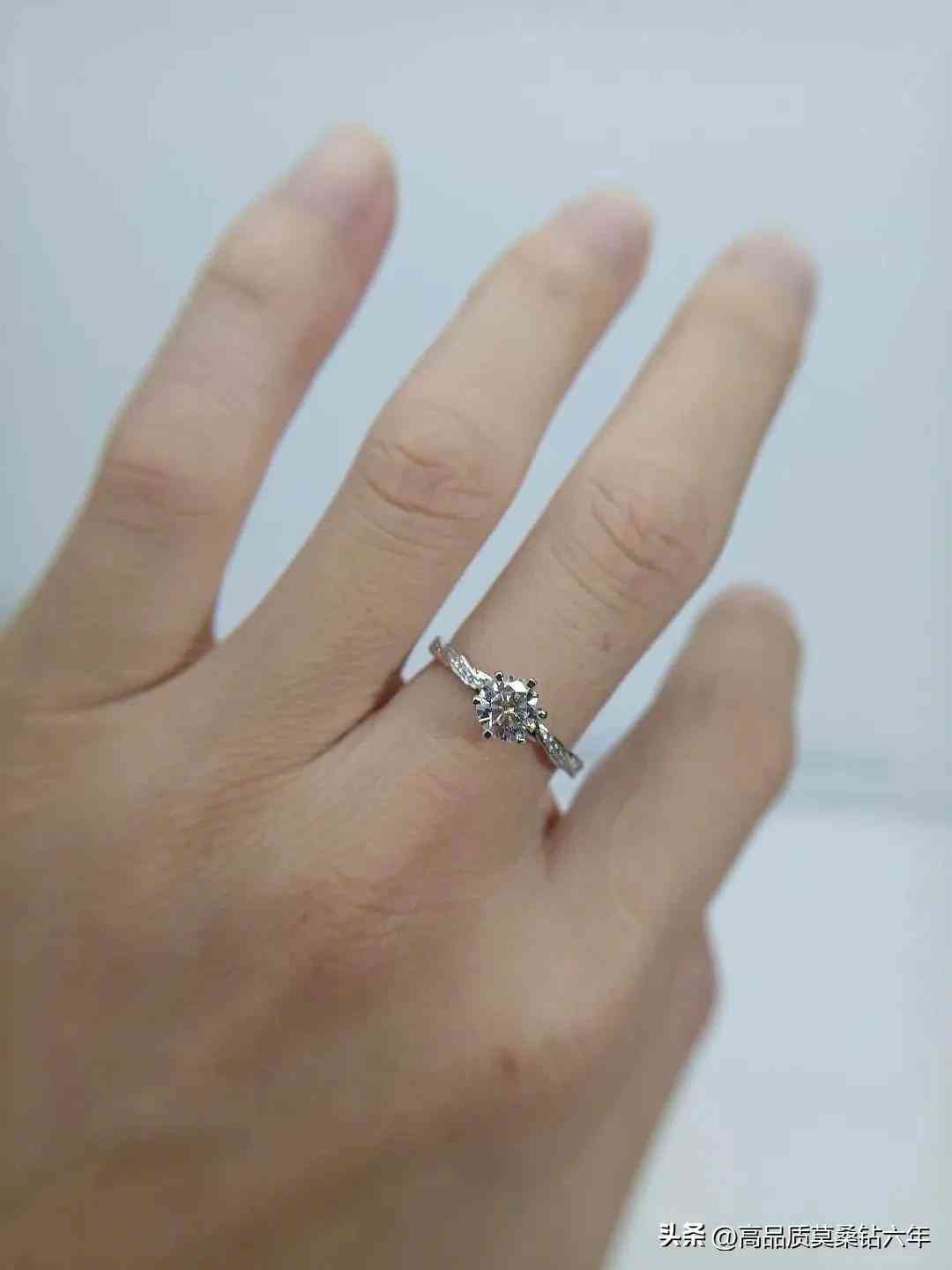 其次是,品質(zhì)好的莫桑,不發(fā)黃不發(fā)藍(lán)不發(fā)灰,切工清晰對(duì)稱,側(cè)面看潔白無(wú)瑕,再選擇適中的大小,比如手寸小選個(gè)50分的,手寸中等選個(gè)1克拉的,不會(huì)太夸張,且不擔(dān)心太大了顯假,日常戴很適合。