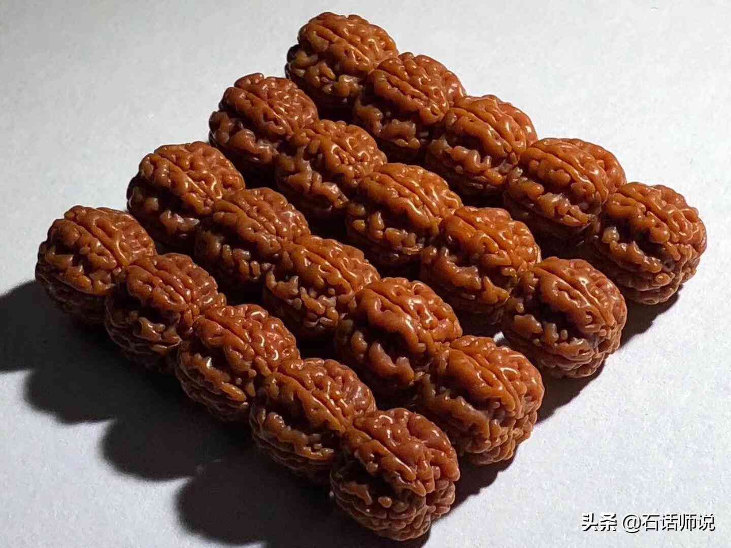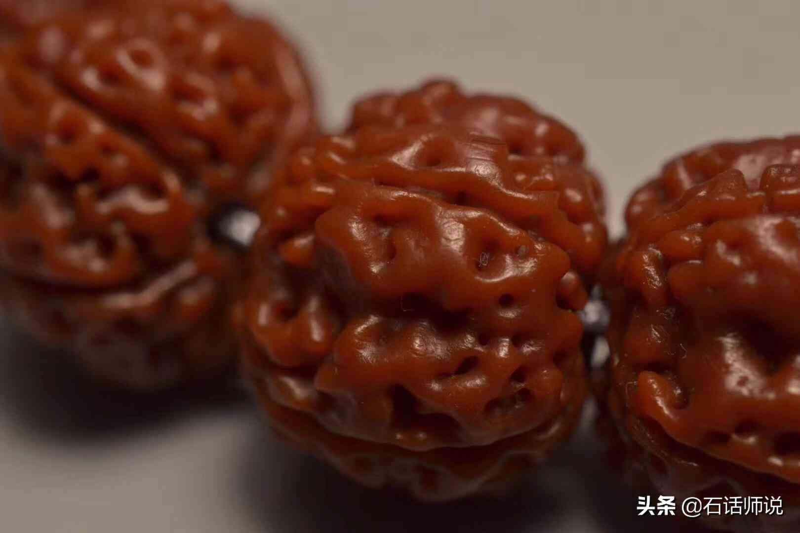.個我覺得也是最重要的一個點,就是要選好質(zhì)量。金剛菩提子品種、紋路幾乎每一棵樹都有不同。我們在選的時候,根據(jù)自己的經(jīng)濟情況,一定要盡量選整體飽滿、不虧肉、紋路柴的。因為一條金剛盤出來短則兩三年,長則十幾年甚至跟你一輩子,所以既然要玩,就別太吝惜,避免盤半道了討厭它,還得更換。