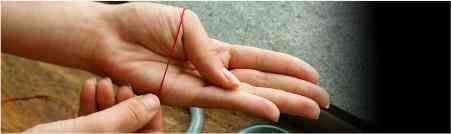 步驟二:用細(xì)線測量手掌最寬處的周長。