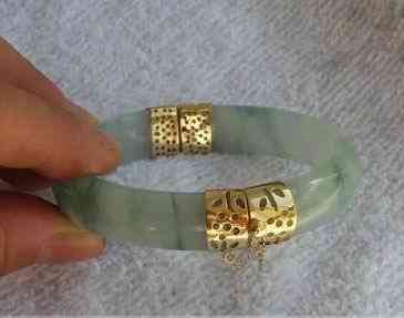 這是一只普通的玉鐲,接口處的金飾做工也很普通,大概每個城市的金店里都能做,斷的方式也很普通,就是簡簡單單的兩截,屬于最尋常,也最適用的類型。