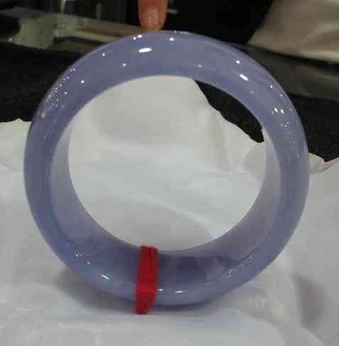 首先要看玉鐲的圓度好不好。包括外形輪廓是否對稱,若是不對稱,就影響美觀。其次看條子粗細(xì)與圈口的關(guān)系。一般講,圈口(寸口)大小應(yīng)該與條子粗細(xì)比例協(xié)調(diào)。圈口小,條子相應(yīng)就要細(xì);圈口大,條子就要粗。一般年紀(jì)大的人愛戴粗條子,年輕人喜歡細(xì)條子。目前云南一些地方仍產(chǎn)粗條子,而細(xì)條子的玉鐲則基本產(chǎn)自廣東平洲等地。最后看其表面打磨(拋光)拋光是否到位。并應(yīng)以線吊鐲,拿玉棒輕輕叩擊,如聲音清脆,說明無綹裂,否則就要注意是否有沒被發(fā)現(xiàn)的綹裂隱藏。
