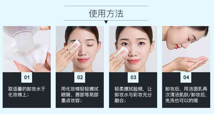第三步,輕柔擦拭臉頰,讓卸妝水與臉部彩妝充分融合;最后一步,卸妝后,用潔面乳再次清潔肌膚就完成了哇