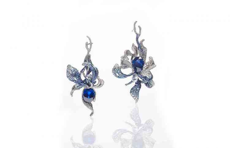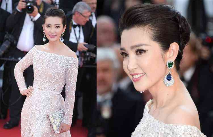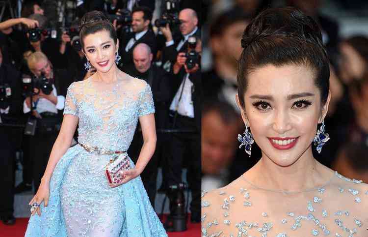 在戛納紅毯中李冰冰一身藍(lán)色長(zhǎng)裙搭配Cindy Chao四季系列珠寶