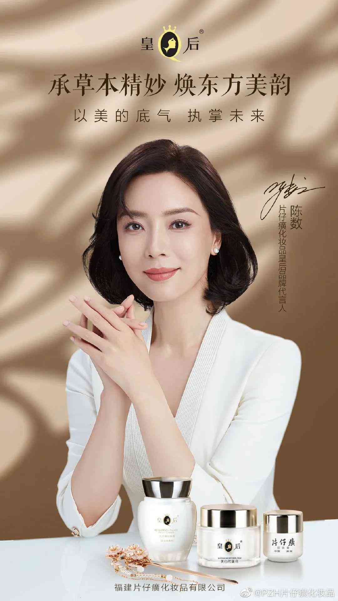 10月20日,陳數(shù)成為片仔癀化妝品皇后品牌代言人。
