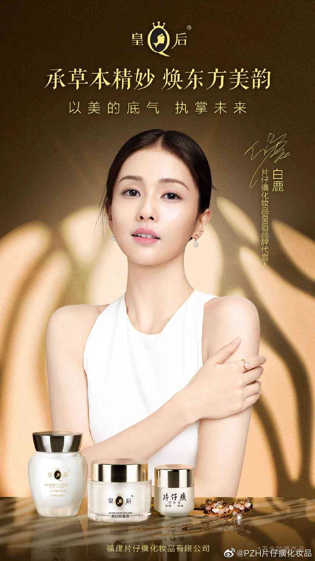 10月20日,白鹿成為片仔癀化妝品皇后品牌代言人。