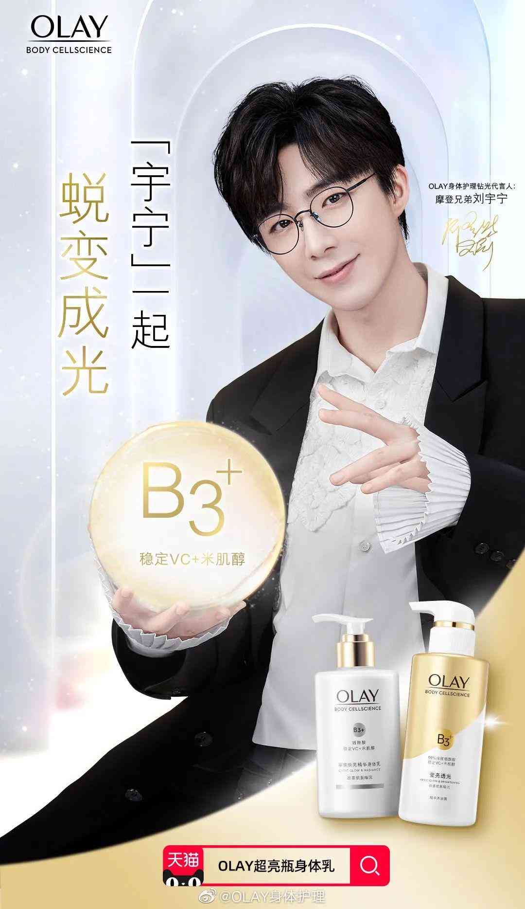 10月20日,劉宇寧成為OLAY身體護(hù)理品牌鉆光代言人。
