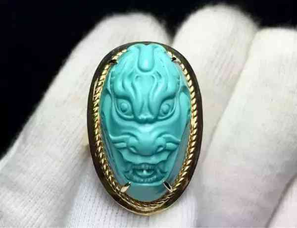 這種戒面一般都先看戒面的雕工如何,然后再看綠松的質(zhì)地,是否無暇、無裂痕等,接著就是看戒面和戒托的融合度。