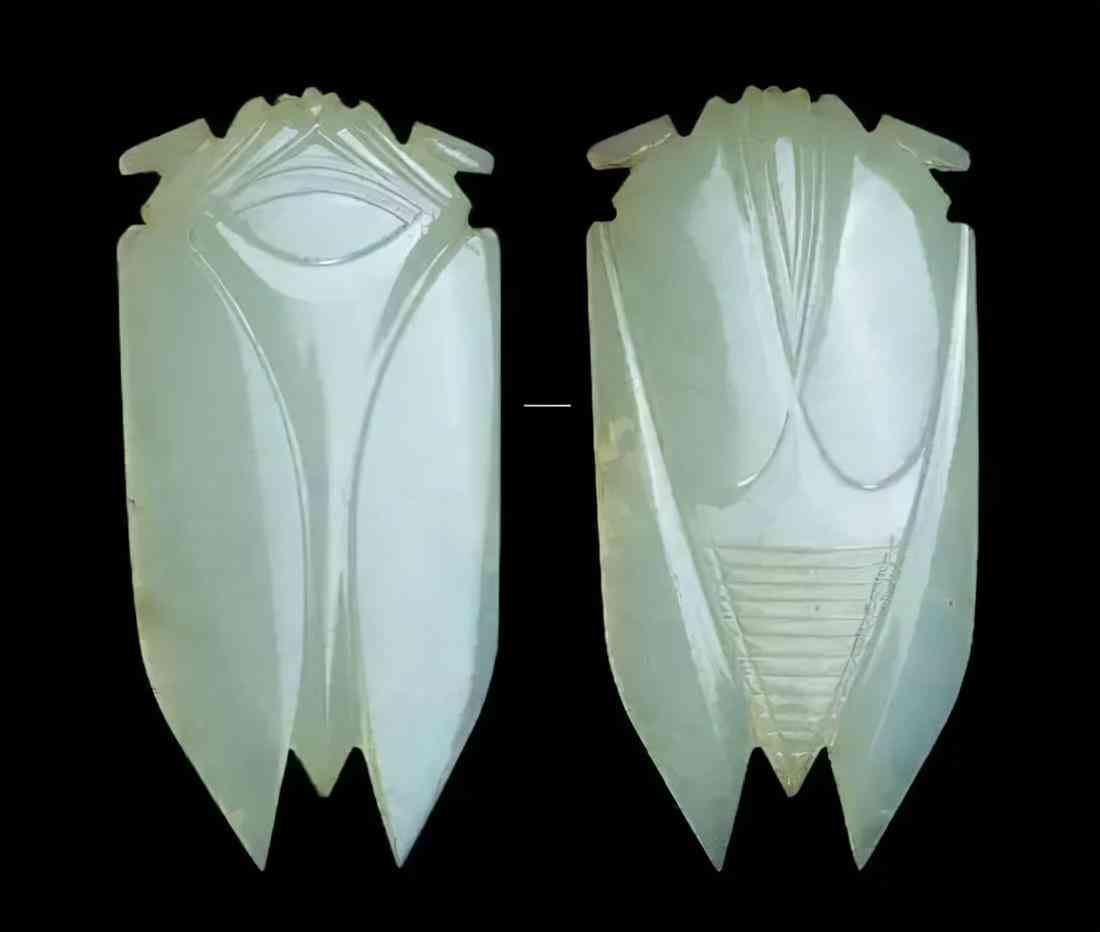 這兩種玉石化學(xué)性質(zhì)都很穩(wěn)定,便于雕刻,而且細(xì)膩瑩潤(rùn),有著天然的美感,自身的紋路也能和玉蟬的雕刻相融合,具有極高的審美與藝術(shù)價(jià)值。