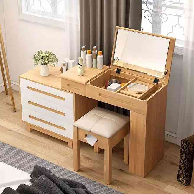 木質(zhì)材質(zhì)的梳妝臺(tái)也分為多種材料:絮木板、實(shí)木板、組合板等