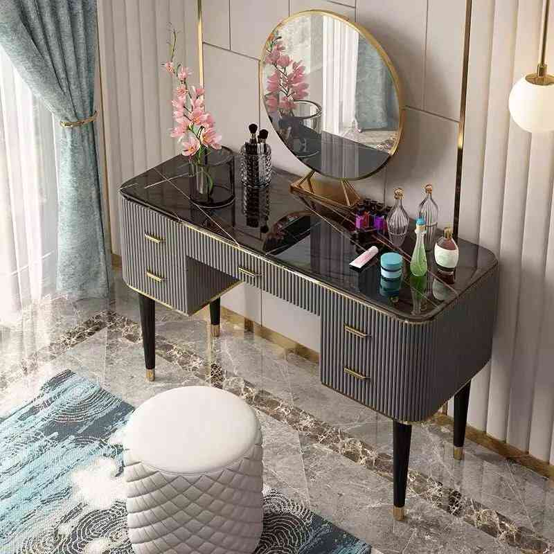 目前網(wǎng)紅帶貨的發(fā)展,讓這種集金屬與烤漆平滑質(zhì)感的梳妝臺(tái)登上了潮流舞臺(tái)