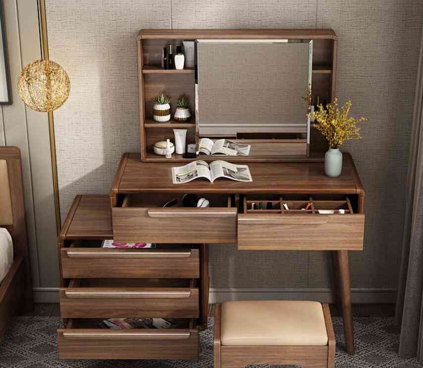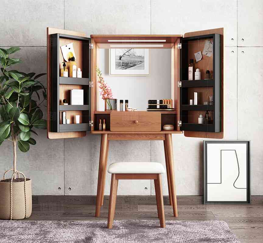 總結(jié):根據(jù)自身物品數(shù)量與需求來選擇是閉合式梳妝臺(tái)還是推拉式梳妝臺(tái)