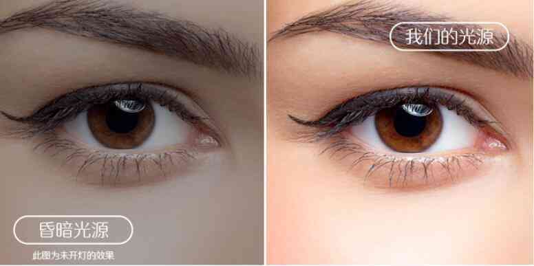 就眼妝來說,如果你的鏡子沒有光源,這個(gè)畫面如同左邊一般昏暗,這樣會(huì)給你一種錯(cuò)覺,讓眼妝看起來比較濃