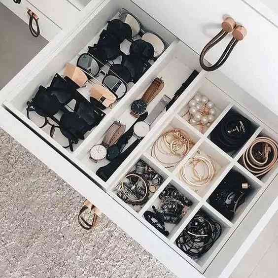 想要在梳妝臺(tái)里收納這些零零散散的東西,你就需要注意是否有格子抽屜存在