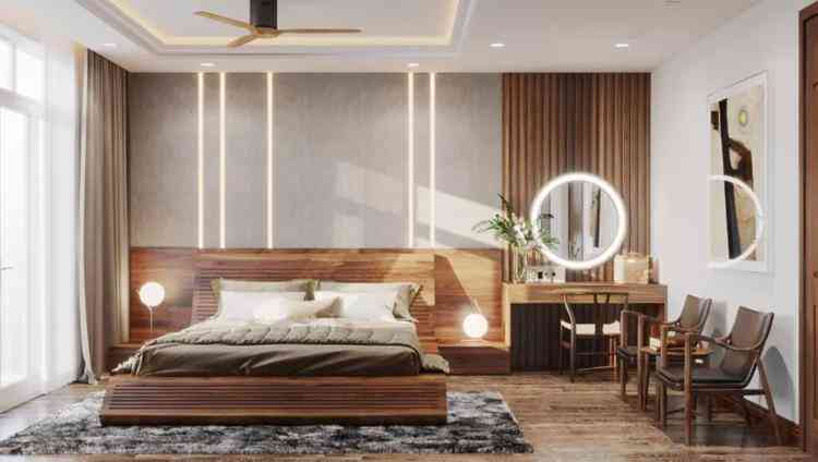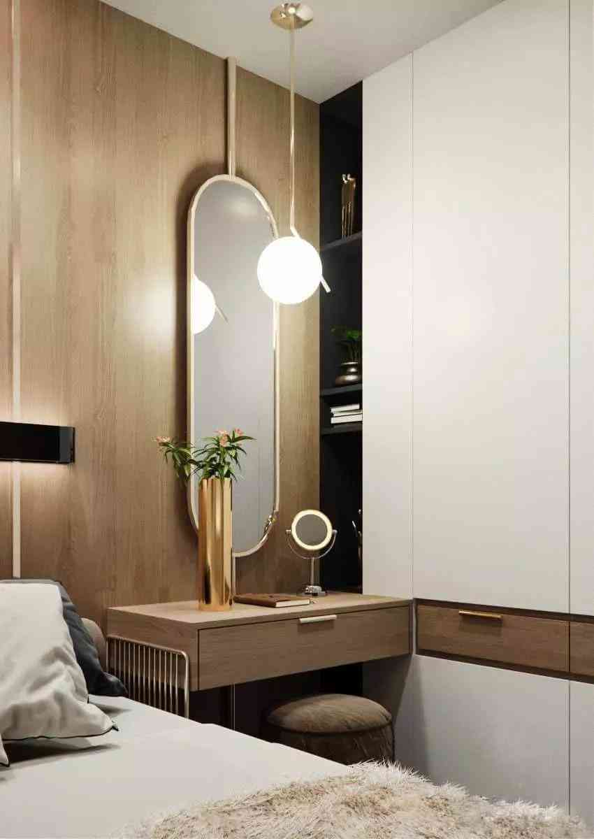 如果你的我是寬度足夠,可以將梳妝臺(tái)置放在床鋪的一側(cè)