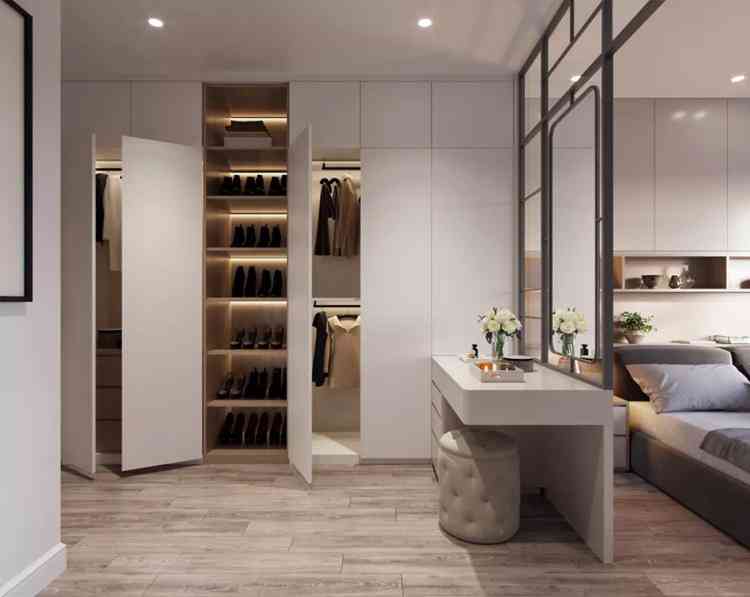 如果你家有衣帽間可以在衣帽間中選擇一個(gè)區(qū)域?qū)iT做梳妝臺(tái)使用
