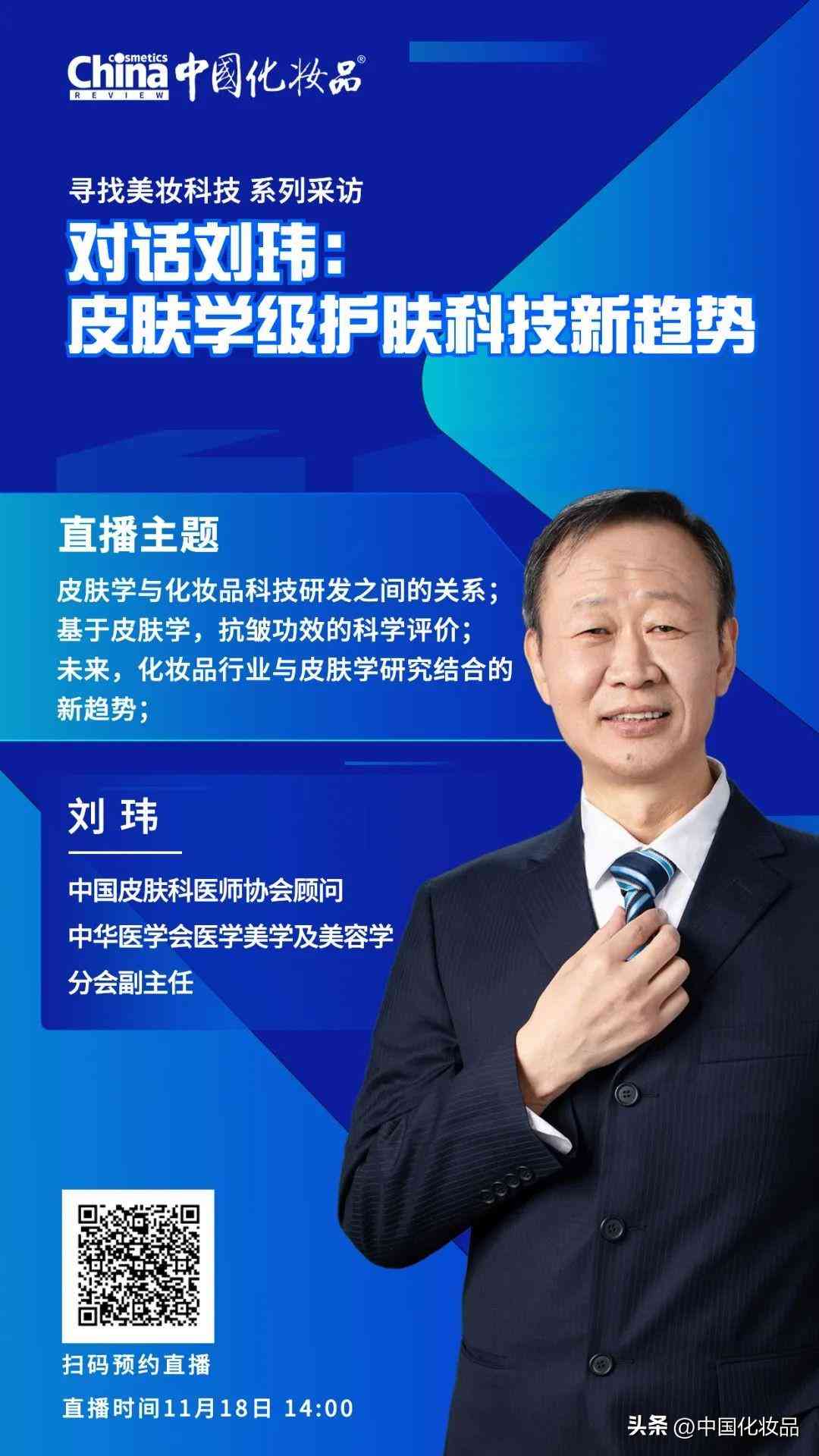 11月18日14:00,劉瑋將來(lái)到《中國(guó)化妝品》直播間,與大家一起探討: