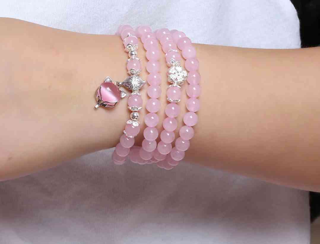 ?寓意及象征:粉水晶是愛(ài)情之石,手鏈隨著手腕脈搏之力,將水晶之磁場(chǎng)傳遍全身,使磁場(chǎng)能力更強(qiáng),帶來(lái)旺桃花旺人緣關(guān)系之運(yùn)。