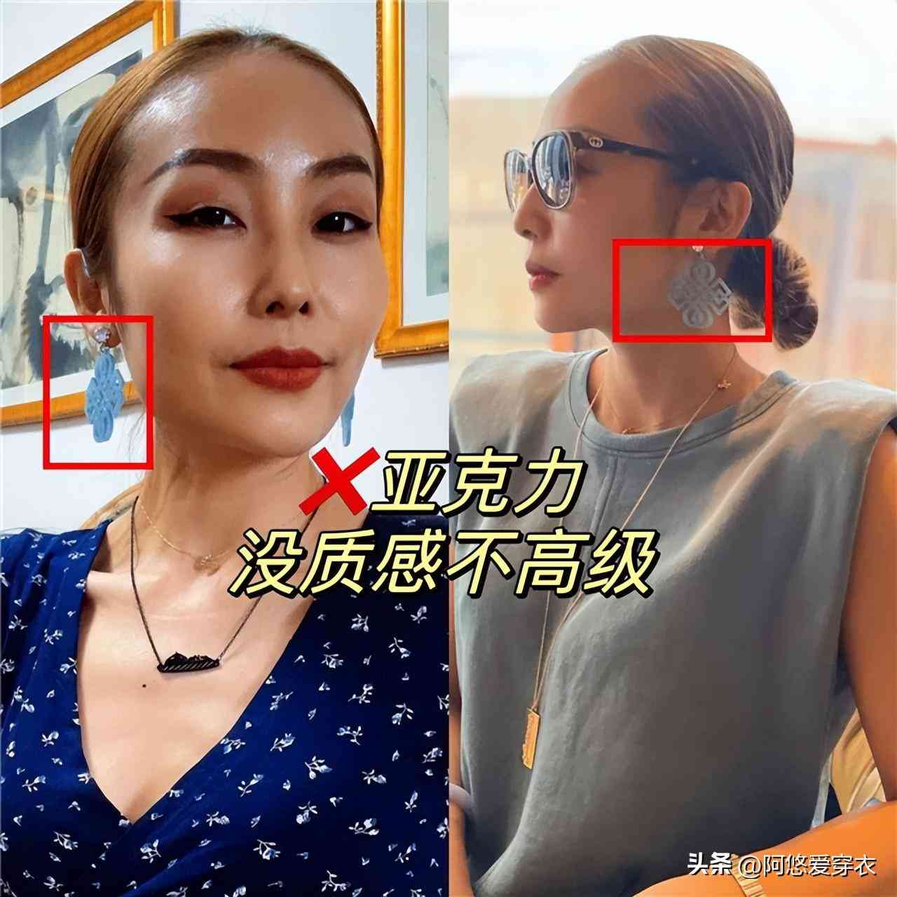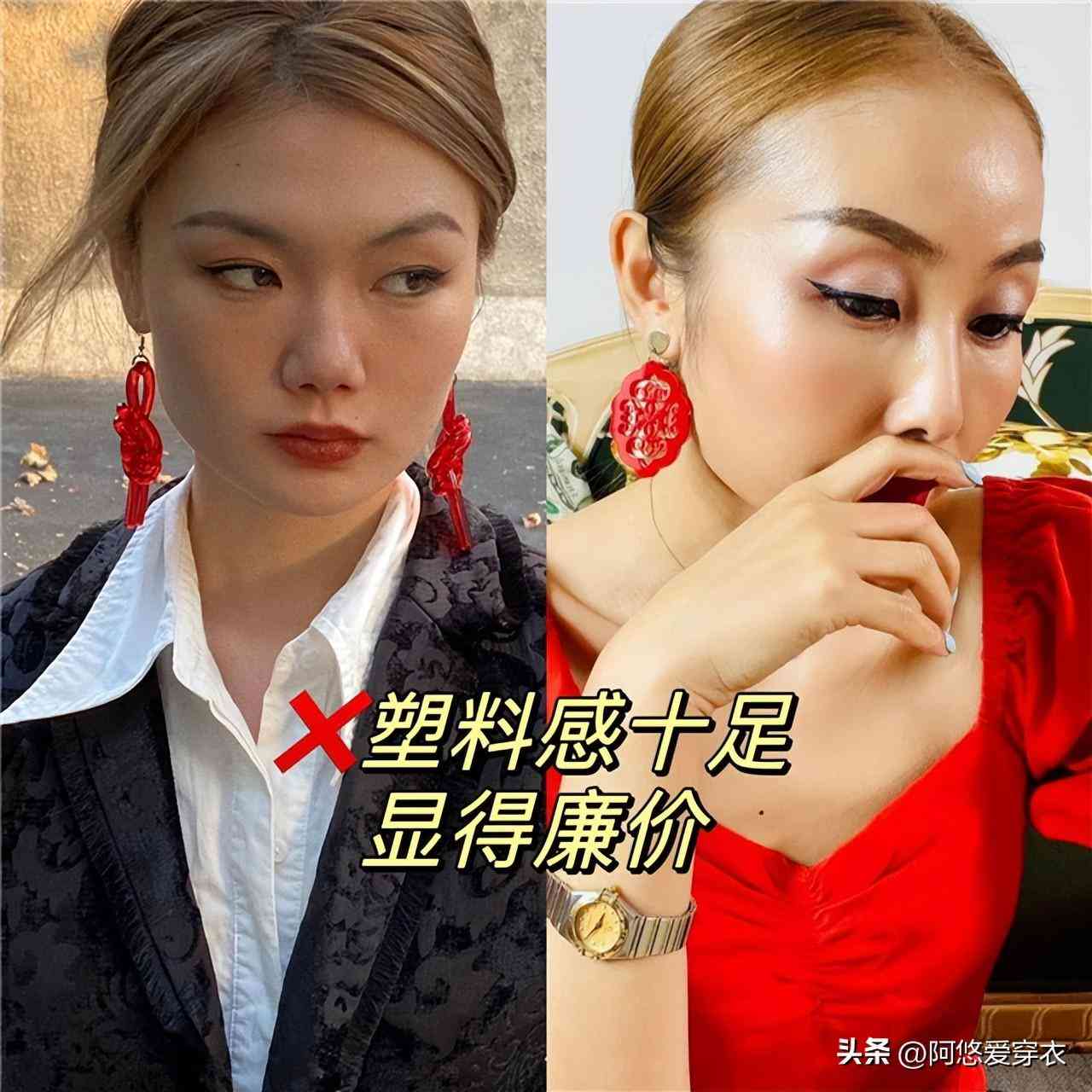 尤其是這種設(shè)計(jì)復(fù)雜而且材質(zhì)廉價(jià)的塑料耳環(huán),項(xiàng)鏈等首飾,真的是大家一定要避免的,像這種塑料的材質(zhì)帶起來輕飄飄的,一點(diǎn)質(zhì)感都沒有,就算設(shè)計(jì)時(shí)髦,那也是容易暴露你個(gè)人氣質(zhì)的。