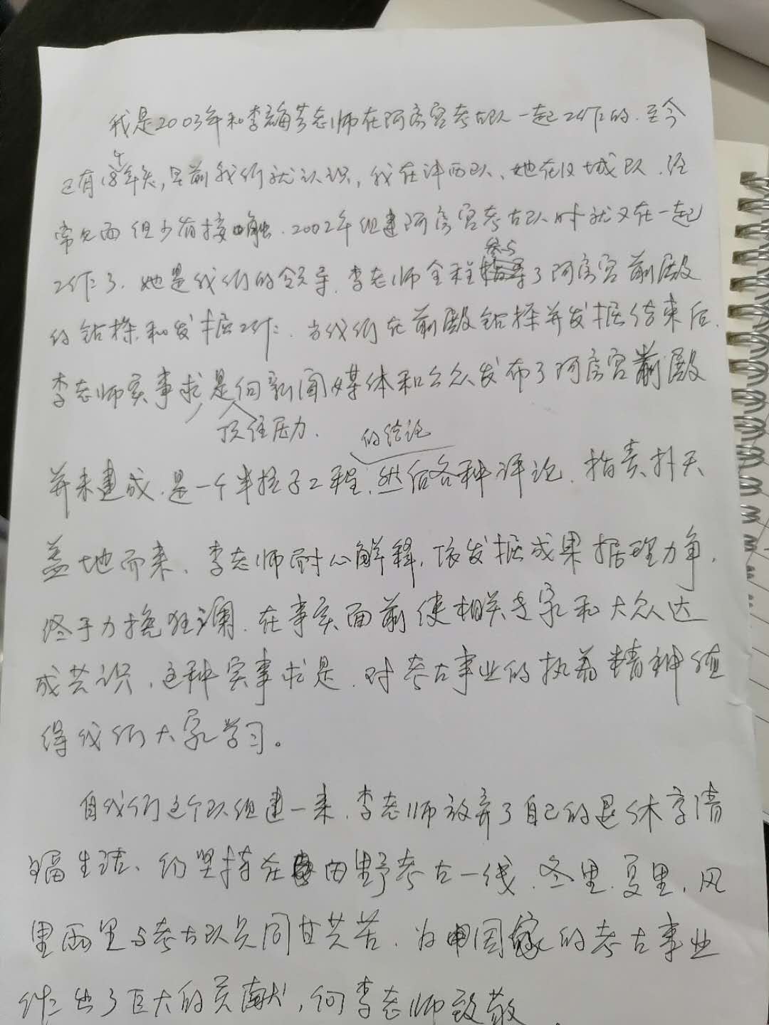 記者來(lái)訪,技師閻松林手寫了一份材料,重新表示考古隊(duì)的觀點(diǎn)。