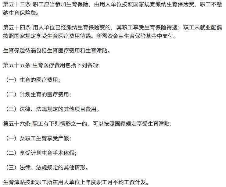 我國(guó)生育保險(xiǎn)待遇主要包括兩項(xiàng),一是生育津貼,二是生育醫(yī)療待遇。這個(gè)待遇是白紙黑字記錄在法律條例中的: