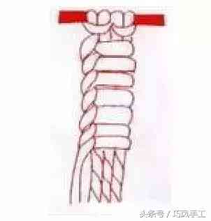 兩邊各取一條繩子繞其他繩子轉(zhuǎn)個(gè)圈打個(gè)結(jié)。