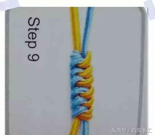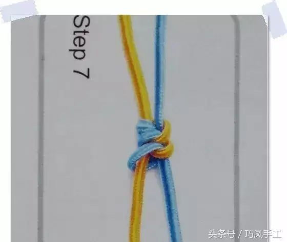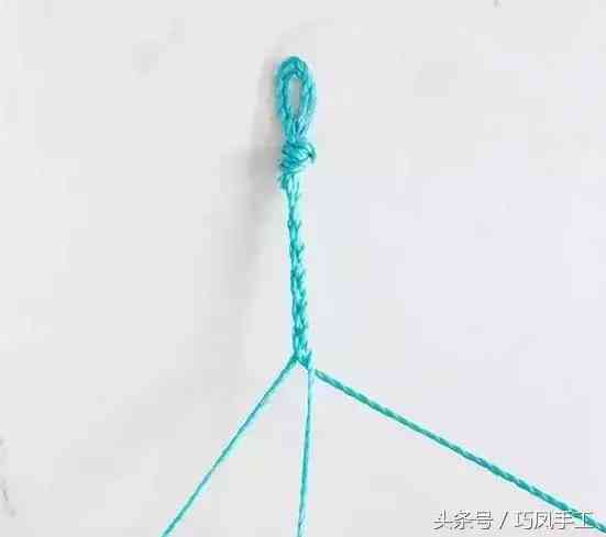 3、中間的兩根繩子編兩次蛇結(jié)。(蛇結(jié)編法參考頭條號(hào)“巧鳳手工”視頻教程)