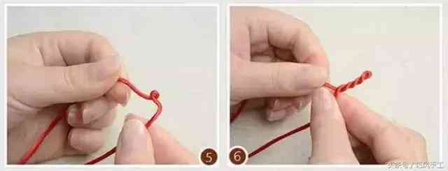 再將兩根紅繩交叉纏繞,注意控制好松緊密度,如圖5、6所示